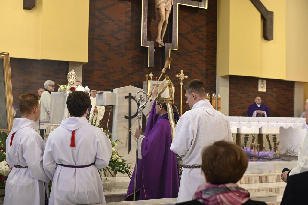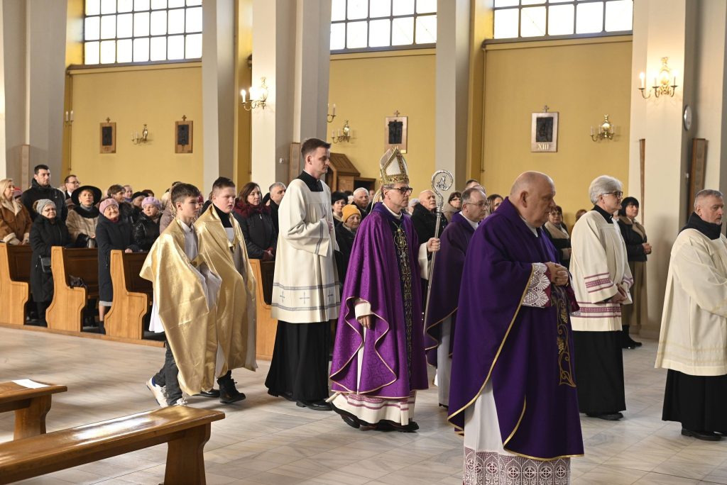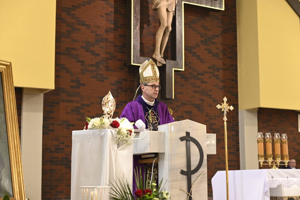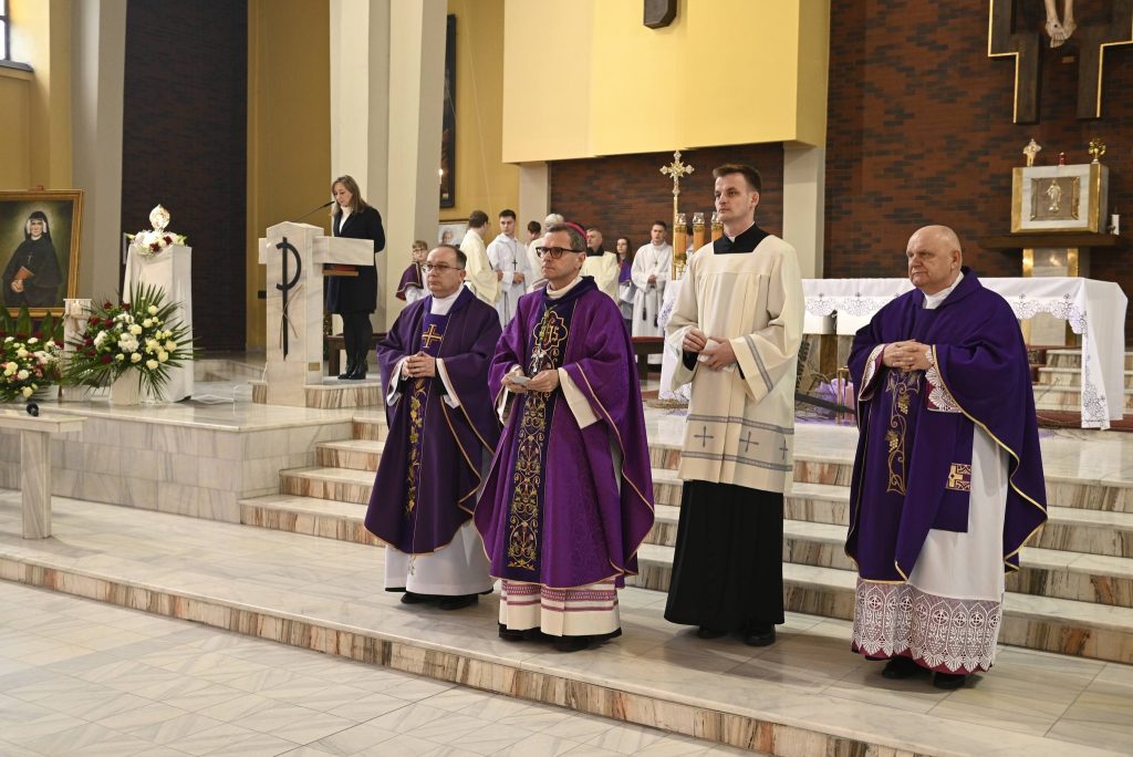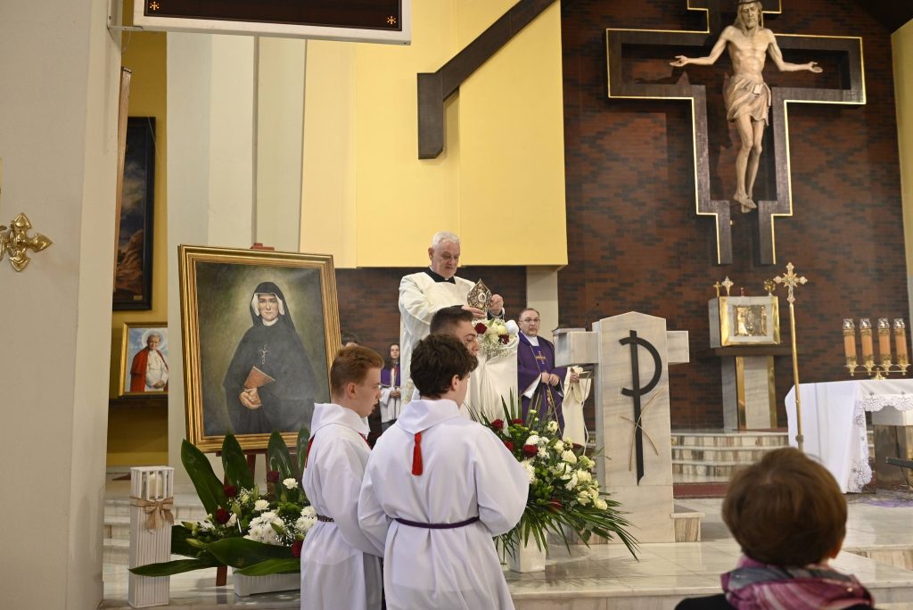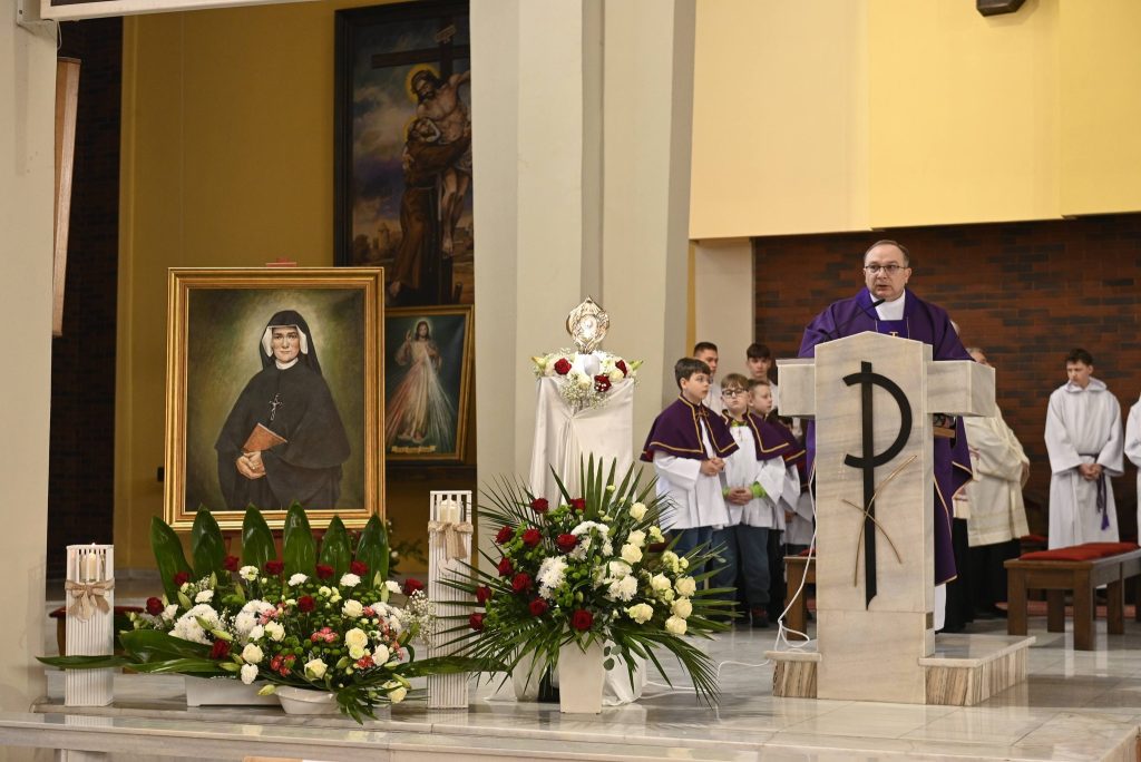 Uroczystości przewodniczył Ksiądz Biskup Mirosław Milewski, który poprowadził wspólną modlitwę oraz dokonał obrzędu wprowadzenia relikwii. To dla naszej wspólnoty wielki dar i szczególny czas zawierzenia Bożemu Miłosierdziu. Obecność relikwii Apostołki Miłosierdzia jest dla nas nie tylko znakiem bliskości świętych, ale także zaproszeniem do jeszcze większej ufności wobec Jezusa Miłosiernego i do codziennego życia orędziem miłości i przebaczenia.
