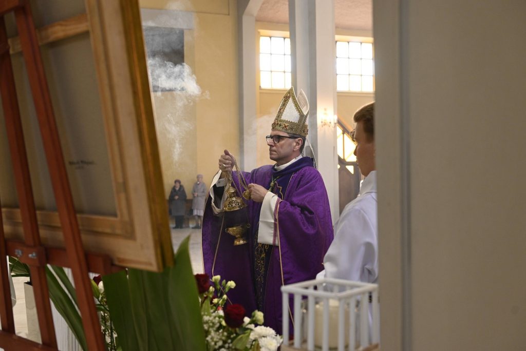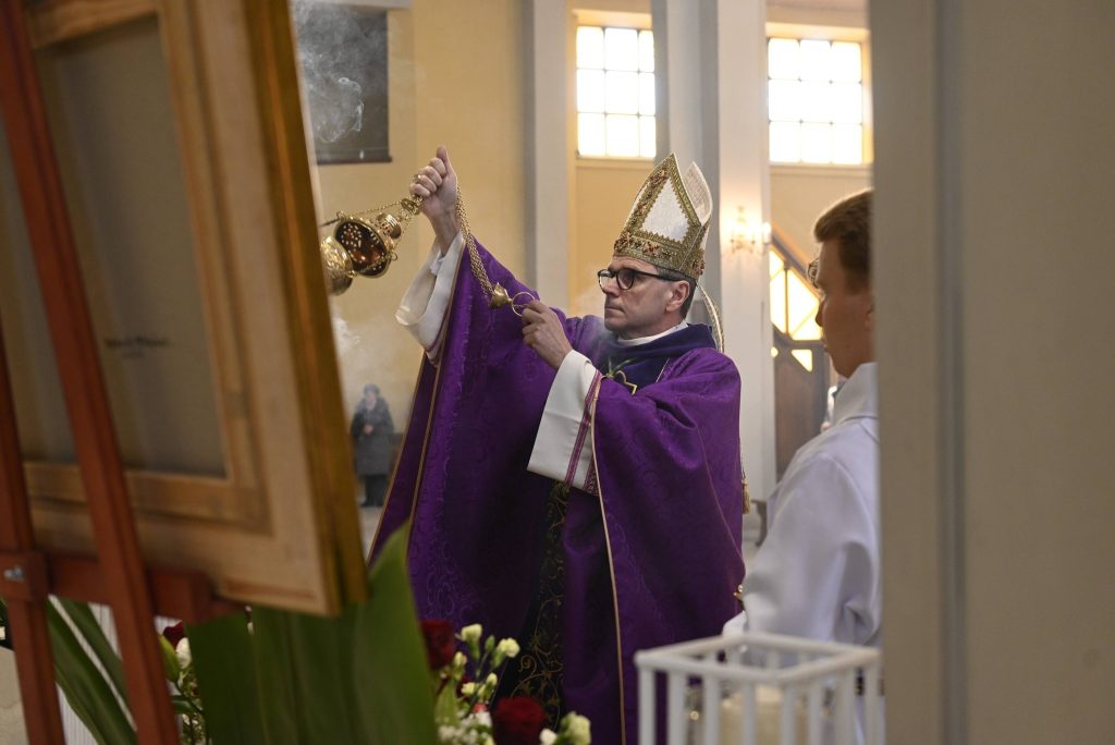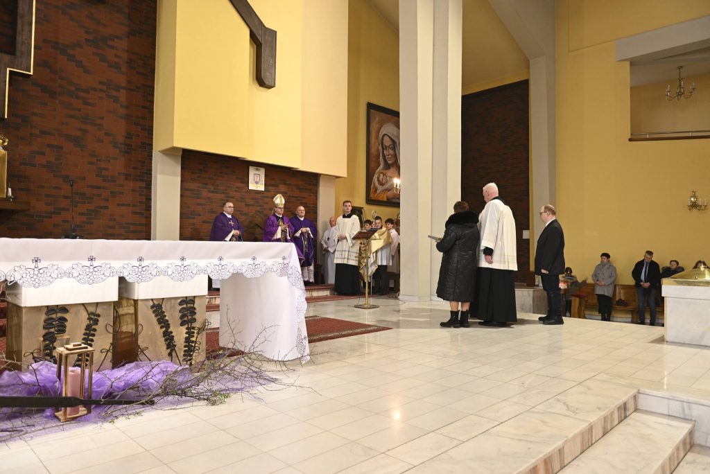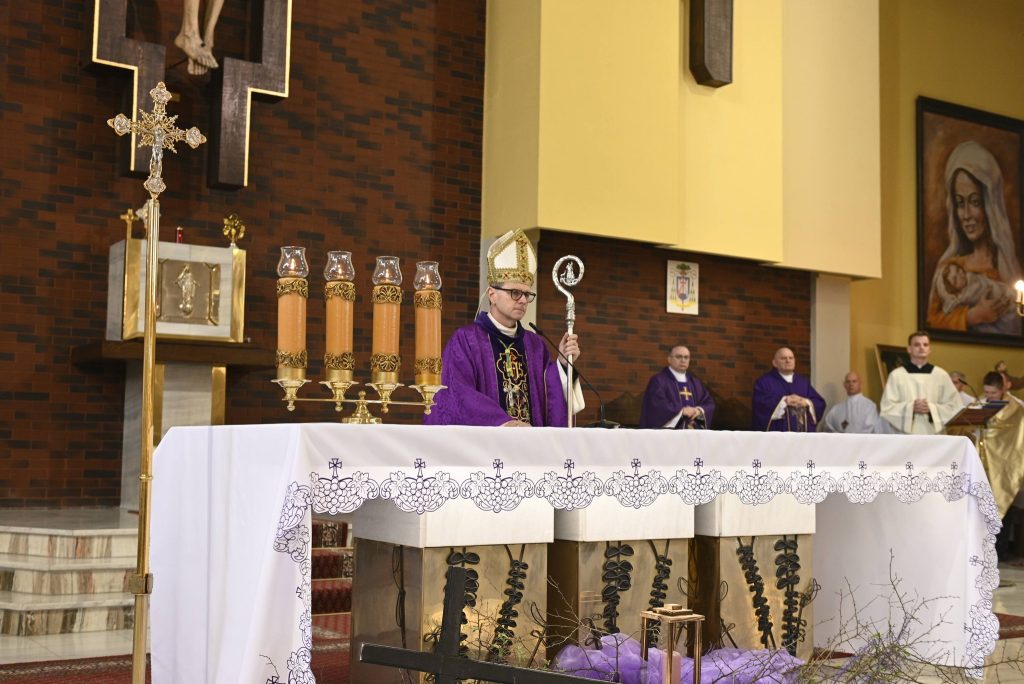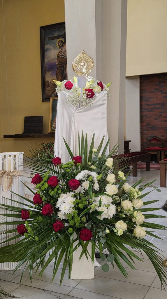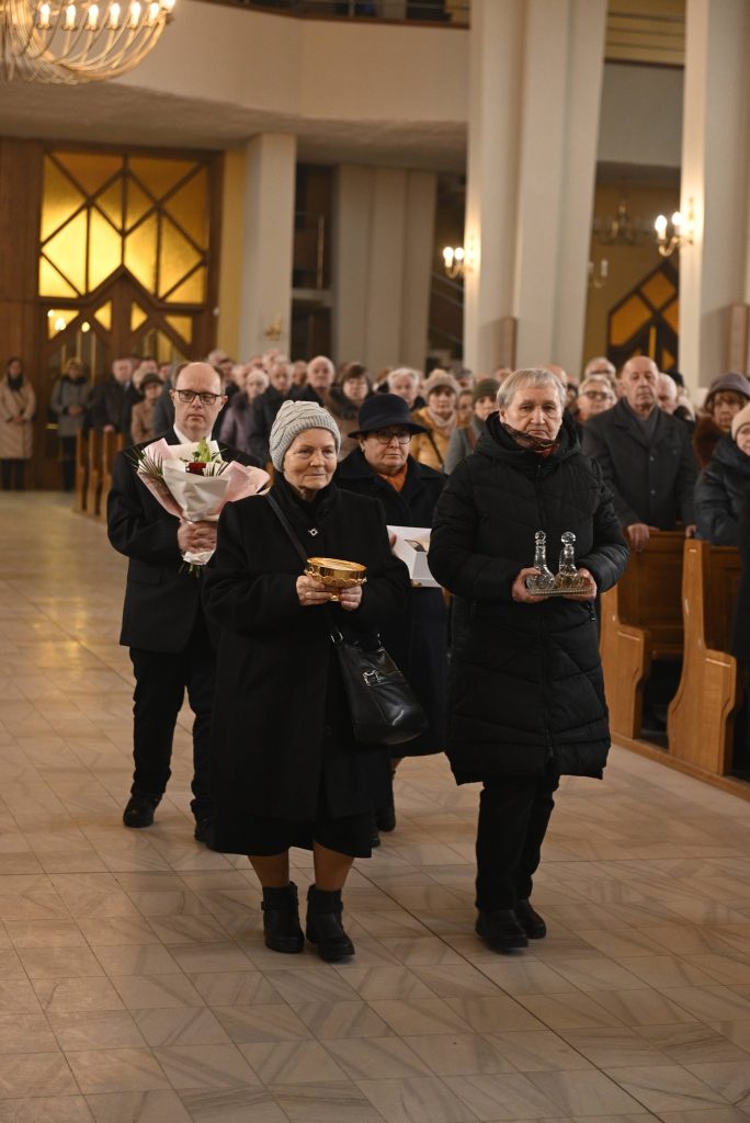 Uroczystości przewodniczył Ksiądz Biskup Mirosław Milewski, który poprowadził wspólną modlitwę oraz dokonał obrzędu wprowadzenia relikwii. To dla naszej wspólnoty wielki dar i szczególny czas zawierzenia Bożemu Miłosierdziu. Obecność relikwii Apostołki Miłosierdzia jest dla nas nie tylko znakiem bliskości świętych, ale także zaproszeniem do jeszcze większej ufności wobec Jezusa Miłosiernego i do codziennego życia orędziem miłości i przebaczenia.