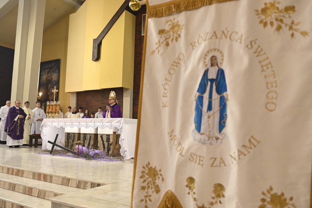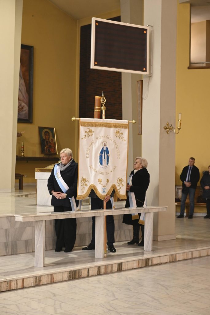 Podczas Eucharystii została również poświęcona chorągiew Kół Różańcowych, która od tej chwili będzie towarzyszyć wspólnej modlitwie oraz parafialnym uroczystościom, przypominając o sile i wartości modlitwy różańcowej w naszej wspólnocie.