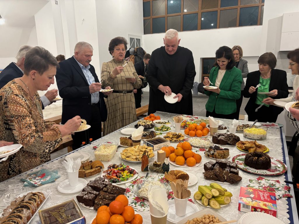 Był to piękny czas wspólnego świętowania i budowania jedności. Rozpoczęliśmy od dzielenia się opłatkiem, a następnie wybrzmiały kolędy, które wprowadziły wszystkich w prawdziwie bożonarodzeniowy nastrój. Szczególnym momentem były także życzenia złożone przez ks. Proboszcza – pełne ciepła, wdzięczności i zachęty do dalszego zaangażowania w życie Parafii.